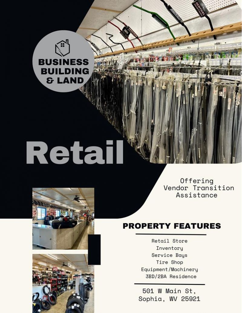 Major Business Opportunity featuring a Power Sports Parts and Service Business with over $1 million in included inventory. Heralded by distributing reps as the "Largest Non-Franchised Stocking Distributor in the U.S. for Power Sports Parts", this property offers an extensive setup for a prospective buyer. The property includes: - Retail & Industrial Space: A 3,200+ sq. ft. retail store, a 6,500+ sq. ft. manufacturing/service area and warehouse, and a 530 sq. ft. office. - Equipment: 4 interior garage bays, 1 exterior storage bay, multiple ATV lifts, 1 car lift, specialized servicing and manufacturing equipment, and 30+ tire racks. - Residential...read more