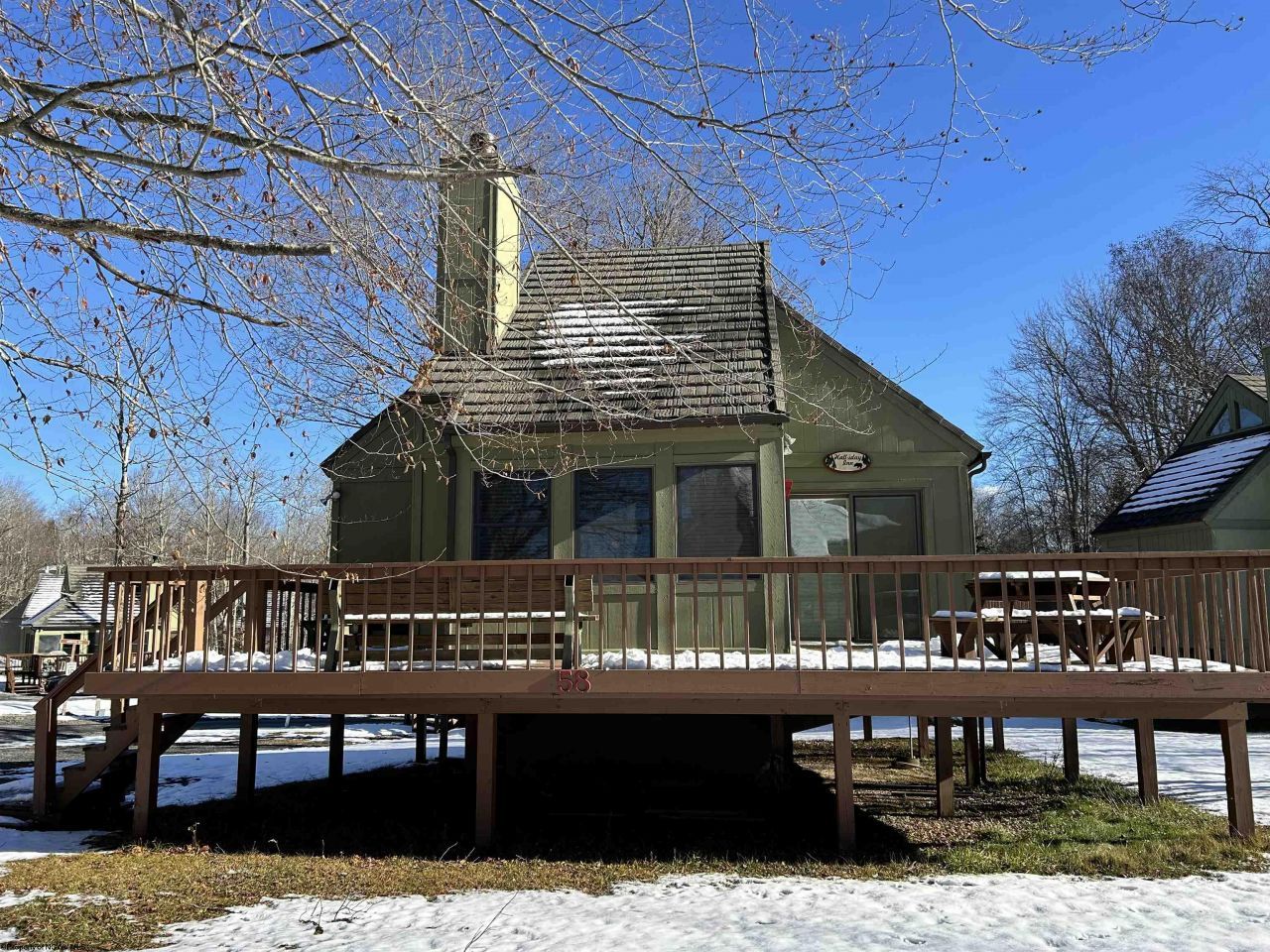 On a corner lot with easy access and lots of space, this well-maintained and updated unit offers total convenience! Located near the lodge and play area on a level lot with ample parking. An expanded wrap around deck area gives plenty of space for outdoor relaxation and dining. Inside, the eat-in kitchen features newer cabinets and backsplash, as well as updated appliances. A welcoming living area features unique wildlife decor, quality furnishings and a wood burning fireplace perfect for a rustic and cozy atmosphere. An updated bath with jetted tub is perfect after a day spent enjoying the area's many activities. Charming upstairs loft provides...read more